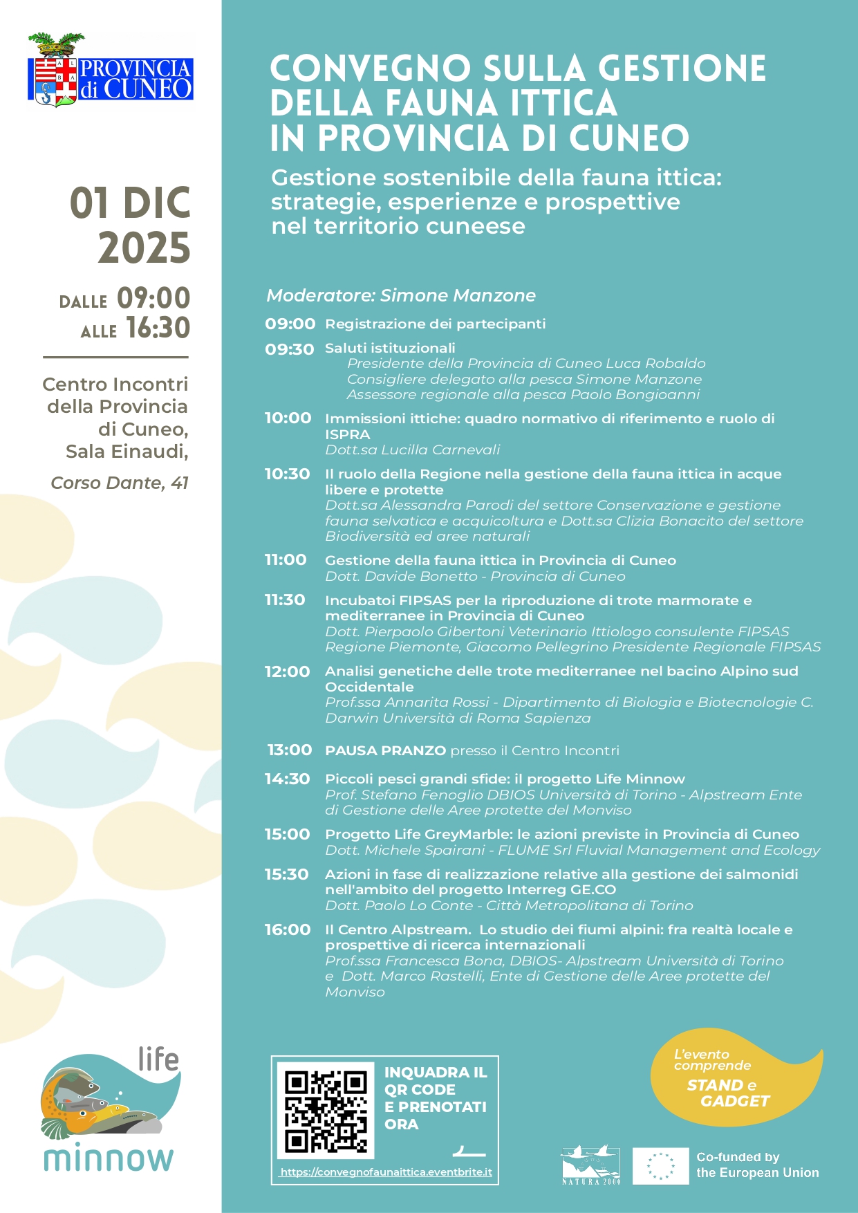 Lunedì 1 dicembre 2025, presso il Centro Incontri della Provincia di Cuneo (Sala Einaudi, Corso Dante n. 41, Cuneo) si terrà un Convegno sulla Gestione della Fauna Ittica dal titolo "Gestione sostenibile della fauna ittica: strategie, esperienze e prospettive nel territorio cuneese".